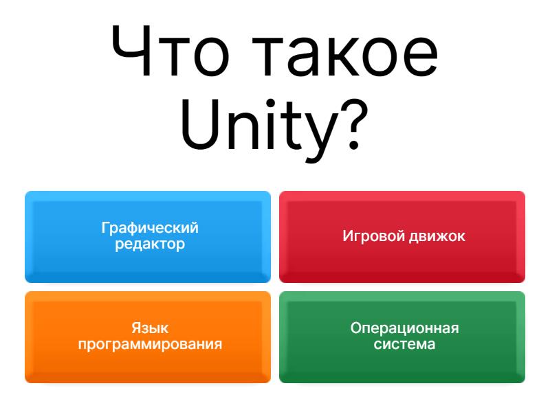 1) Что такое Unity? a) Графический редактор b) Игровой движок c) Язык программирования d) Операционная система 2) Какой язык программирования чаще всего используется в Unity? a) Java b) C# c) Python d) JavaScript 3) Как называется основной файл, где хранятся настройки проекта Unity? a) Project.ini b) Unity.settings c) Config.json d) ProjectSettings (Папка) 4) Какой компонент отвечает за физику объекта в Unity a) Transform b) Collider c) Rigidbody d) Mesh Renderer 5) Как создать новый скрипт в Unity a) ПКМ в Project -> Create -> C# Script b) ПКМ в Hierarchy -> New Script c) Через меню Edit -> New Code d) в Inspector -> Add Script 6) Какой метод вызывается один раз при старте игры в скрипте Unity? a) Update ( ) b) Awake ( ) c) Start ( ) d) Init ( ) 7) Как добавить объект на сцену в Unity a) Через меню File -> New Object b) Нажать Ctrl + N c) в Inspector -> Spawn Object d) ПКМ в Hierarchy -> Create Empty 8) Что делает метод Instantiate ( )? a) Удаляет объект b) Создает копию объекта во время выполнения c) Загружает сцену d) Изменяет цвет объекта 9) Какой компонент позволяет объекту отображаться на сцене? a) Transform b) Collider c) Mesh Renderer d) Rigidbody 10) Как сохранить сцену в Unity a) File -> Save Scene b) Ctrl + S c) Оба варианта верны (File -> Save Scene и Ctrl + S) d) Через меню Edit -> Save Project