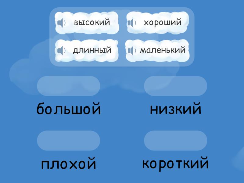 хороший - плохой, маленький - большой, длинный - короткий, высокий - низкий,