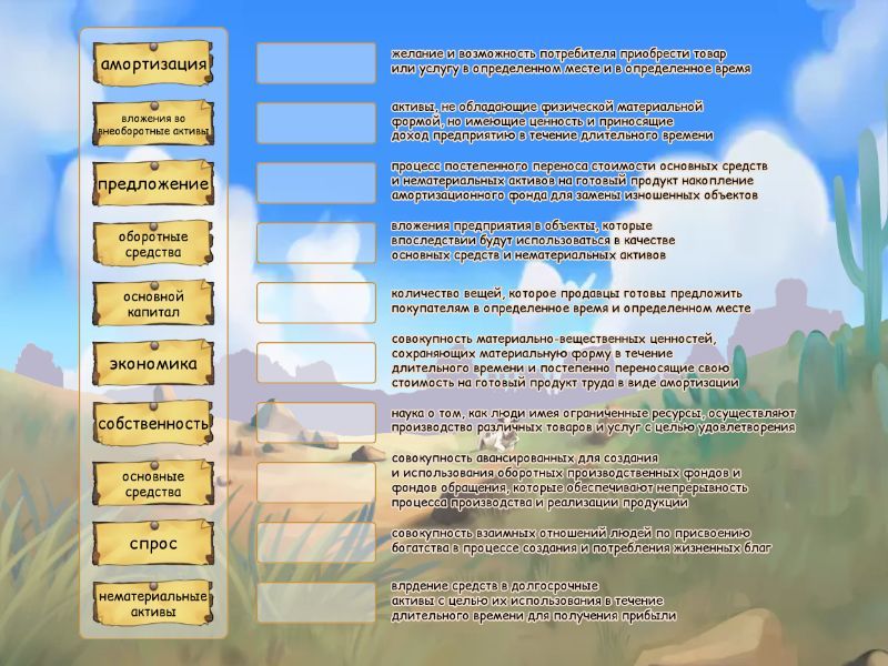 экономика - наука о том, как люди имея ограниченные ресурсы, осуществляют производство различных товаров и услуг с целью удовлетворения , спрос - желание и возможность потребителя приобрести товар или услугу в определенном месте и в определенное время , предложение - количество вещей, которое продавцы готовы предложить покупателям в определенное время и определенном месте , собственность - совокупность взаимных отношений людей по присвоению богатства в процессе создания и потребления жизненных благ, основные средства - совокупность материально-вещественных ценностей, сохраняющих материальную форму в течение длительного времени и постепенно переносящие свою стоимость на готовый продукт труда в виде амортизации, основной капитал - влрдение средств в долгосрочные активы с целью их использования в течение длительного времени для получения прибыли , вложения во внеоборотные активы - вложения предприятия в объекты, которые впоследствии будут использоваться в качестве основных средств и нематериальных активов, амортизация - процесс постепенного переноса стоимости основных средств и нематериальных активов на готовый продукт накопление амортизационного фонда для замены изношенных объектов , оборотные средства - совокупность авансированных для создания и использования оборотных производственных фондов и фондов обращения, которые обеспечивают непрерывность процесса производства и реализации продукции, нематериальные активы - активы, не обладающие физической материальной формой, но имеющие ценность и приносящие доход предприятию в течение длительного времени,