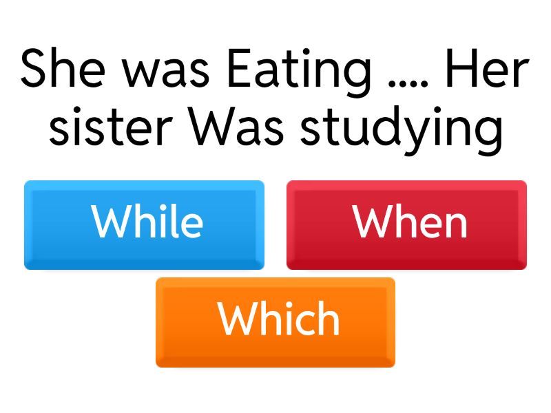 1) She was Eating .... Her sister Was studying a) While b) When c) Which 2) She was Eating .... Her sister Was studying a) While b) When c) Which 3) Mohammed ………………on the computer while his brother was talking on the phone. a) was worked b) are working c) were working d) was working 4) While you…………… at the photography studio, I was studying graphic design at college. a) was sitting b) are sit c) were sitting d) was sitted 5) While she ……………with her sister downstairs, her mother was looking for her upstairs . a) was talking b) are talking c) were talking