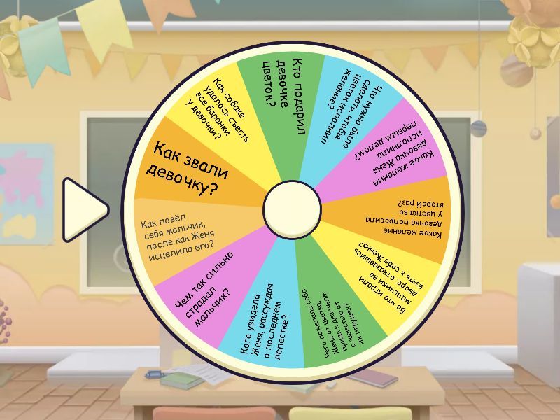 1) Как звали девочку? a) Женя b) Жанна 2) Как собаке удалось съесть все баранки у девочки? a) Она вырвала их силком b) Девочка зазевалась c) Девочка сама отдала их собаке d) девочка их уронила 3) Кто подарил девочке цветок? a) Волшебник b) Старушка c) Садовник d) Мама 4) Что нужно было сделать, чтобы цветок исполнил желание? a) Потрясти цветок и произнести стих b) Оторвать один лепесток и бросить его на землю c) Оторвать один лепесток и произнести стих d) Дунуть на цветок и сказать 5) Какое желание девочка Женя исполнила первым делом? a) Вернуться домой в целости и сохранности b) Чтоб собаки больше не приставали c) Оказаться дома с баранками d) Что бы оказаться в магазине 6) Какое желание девочка попросила у цветка во второй раз? a) Выйти погулять на улицу b) Пойти в магазин c) Достать вазу и поставить туда цветок d) Восстановить разбившуюся вазу 7) Во что играли мальчики во дворе, отказавшись взять к себе Женю? a) В Южный полюс b) В Северный полюс 8) Чего пожелала себе Женя от цветка, придя к девочкам с завистью от их игрушек? a) Чтобы все игрушки сломались b) Чтобы у неё тоже появилась игрушка 9) Кого увидела Женя, рассуждая о последнем лепестке? a) Симпатичного мальчика b) Маленького мальчика c) Плачущего мальчика d) Маленькую девочку 10) Чем так сильно страдал мальчик? a) Он был хромой b) Он был со сломанной рукой 11) Как повёл себя мальчик, после как Женя исцелила его? a) Забегал так хорошо, что Женя не смогла его догнать b) Продолжил сидеть на скамейке и радовался случившемуся c) Побежал домой к маме d) Заплакал