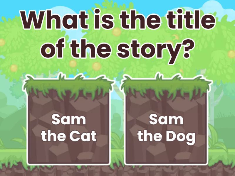 1) What is the title of the story? a) Sam the Cat b) Sam the Dog 2) Who is the main character in the story? a) The Puppy b) Sam the cat 3) Where does the story happen? (place) a) at school b) In the house / on a mat 4) When does the story happen? (Time) a) During the day / nap time b) at midnight/ dinner Time