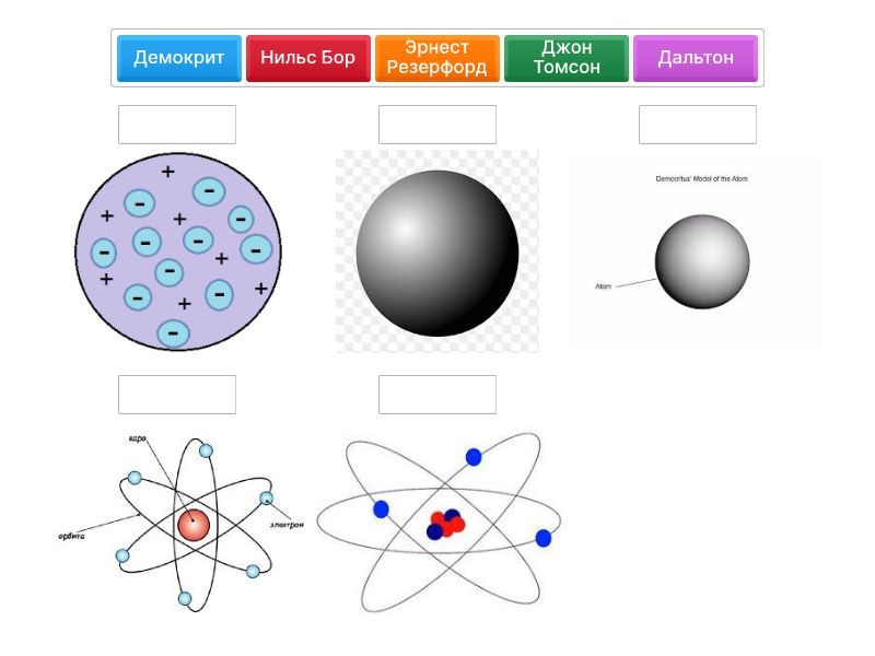 Нильс Бор, Демокрит, Джон Томсон, Дальтон , Эрнест Резерфорд,