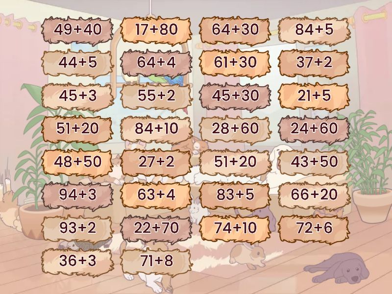 45+3, 84+5, 72+6, 21+5, 64+4, 83+5, 27+2, 36+3, 44+5, 93+2, 71+8, 94+3, 55+2, 37+2, 63+4, 51+20, 84+10, 43+50, 61+30, 22+70, 74+10, 45+30, 28+60, 51+20, 66+20, 49+40, 64+30, 48+50, 24+60, 17+80,