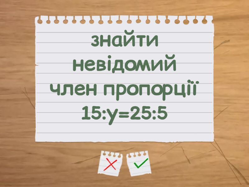 пропорція це... - рівність двох відношень, добуток крайніх членів... - дорівнює добутку середніх, чи це пропорція 12:3=16:4 ? - пропорція, знайти невідомий член пропорції 15:у=25:5 - 3, знайти невідомий член пропорції х:8=16:2 - 64, знайти невідомий член пропорції а:7=14:2 - 49, знайти невідомий член пропорції - 40, із чисел 2 ; 7; 14; 4 склади пропорцію - 14:7=4:2 ; 2:7=4:14..., у пропорції 10:2=15:3 назви середні члени - 2 і 15, чи це пропорція 5:3 = 15:9 ? - так, чи це пропорція 2:7 = 4:15 ? - ні,