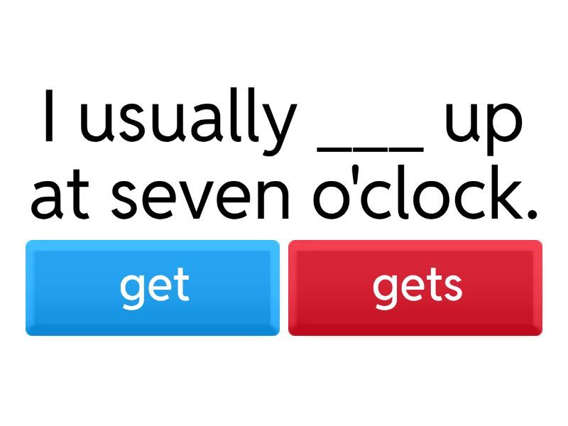 1) I usually ___ up at seven o'clock. a) get b) gets 2) You ___ with your friends every evening. a) plays b) play 3) He ___ his bed every morning. a) make b) makes 4) Helen ___ breakfast at six thirty in the morning. a) have b) has 5) We ___ hands before dinner. a) washes b) wash 6) My parents ___ to work at eight twenty. a) go b) goes 7) They usually ___ morning exercises. a) do b) does 8) Polly usually ___ sandwiches at school. a) eat b) eats 9) She ___ books every day. a) reads b) read 10) The children ___ in the park. a) runs b) run