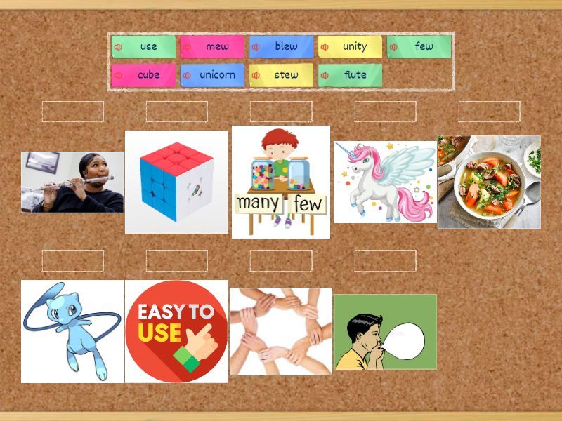 stew, blew, unicorn, cube, flute, unity, few, mew, use,