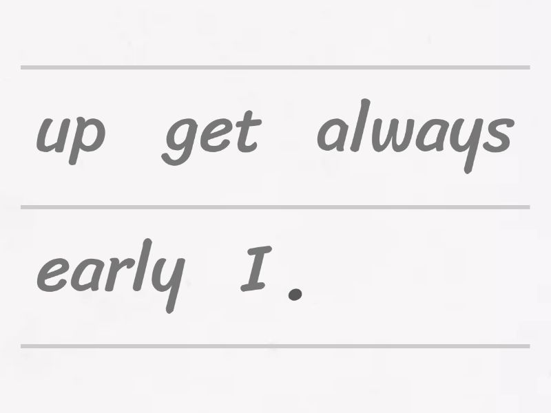 I always get up early. , Yasmin usually goes to school by bus., You never do housework., They sometimes have fish for dinner. , Andy always has lunch at home. , I never watch TV in the morning. , We sometimes go shopping at the weekend. , They usually have coffee for breakfast., Do you usually get up at 8pm?, I don't often go to the cinema. , Do you sometimes go to the gym?, She doesn't usually have breakfast. ,