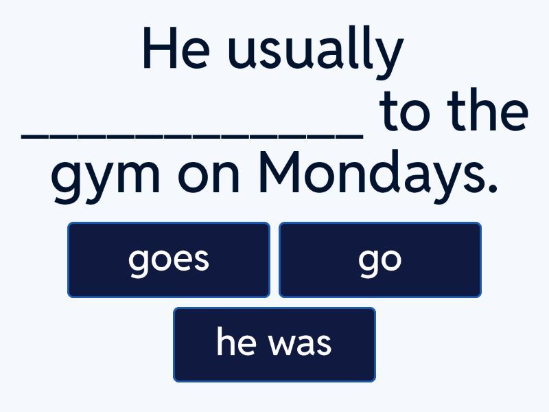 1) He usually ____________ to the gym on Mondays. a) goes b) go c) he was 2) They _______ for the test tomorrow. a) not b) do not / don't study c) study 3) We _______ TV every evening. a) look b) see c) watch 4) She _______ coffee; she prefers tea. a) like b) does not / doesn't like c) good 5) _______ in a big city? a) Do you live b) live c) Do 6) The sun _______ in the east. a) born b) rises c) dies 7) My cat _______ all day long. a) sleeps b) sleep c) to wake up 8) _______ on weekends? a) Does b) he does c) Does he work 9) Qual a tradução: He usually goes to the gym on Mondays. a) Ele não vai à academia nas segundas b) Ele geralmente vai para a academia às segundas. 10) Qual a tradução: They do not / don't study for the test tomorrow. a) Eles não estudam para o teste amanhã. b) Eles estudam para o teste de amanhã 11) Qual a tradução: It's raining heavily. You should take an umbrella. a) Está chovendo muito. Você deveria levar um guarda-chuva. b) Não está chovendo muito. Você deveria levar um guarda-chuva. 12) A tradução: Visitors must / have to turn off their phones in the museum a) Os visitantes não devem desligar seus celulares no museu. b) Os visitantes devem desligar seus celulares no museu. 13) A tradução: May I use your phone for a quick call, please? a) Posso usar seu telefone para uma ligação rápida, por favor? b) Não pode usar seu telefone para uma ligação rápida, por favor? 14) A tradução: He left the office early, so he might / may be stuck in traffic. a) Ele saiu do escritório mais cedo, então pode estar preso no trânsito. b) Ela e ele sairam do escritório mais cedo, então pode estar preso no trânsito. 15) A tradução: You look tired. You should / must go to bed early tonight. a) Você parece cansado(a). Você deveria/precisa ir para a cama cedo hoje à noite. b) Você não está cansado(a). Você não deveria/precisa ir para a cama cedo hoje à noite.