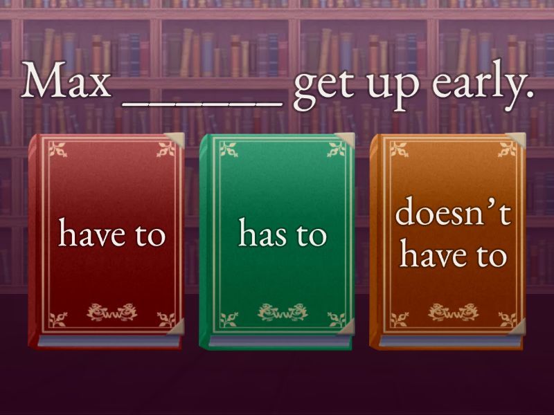 1) Max ______ get up early. a) have to b) has to c) doesn’t have to 2) Amy ______ be fit. a) ) has to do b) have to c) doesn’t have to 3) Max and Amy ______ be friendly. a) has to b) have to c) doesn’t have to 4) Max ______ protect people. a) doesn’t have to b) has to c) have to 5) Amy ______ be creative. a) have to b) has to c) doesn’t have to 6) Max and Amy ______ work long hours. a) have to b) has to c) doesn’t have to