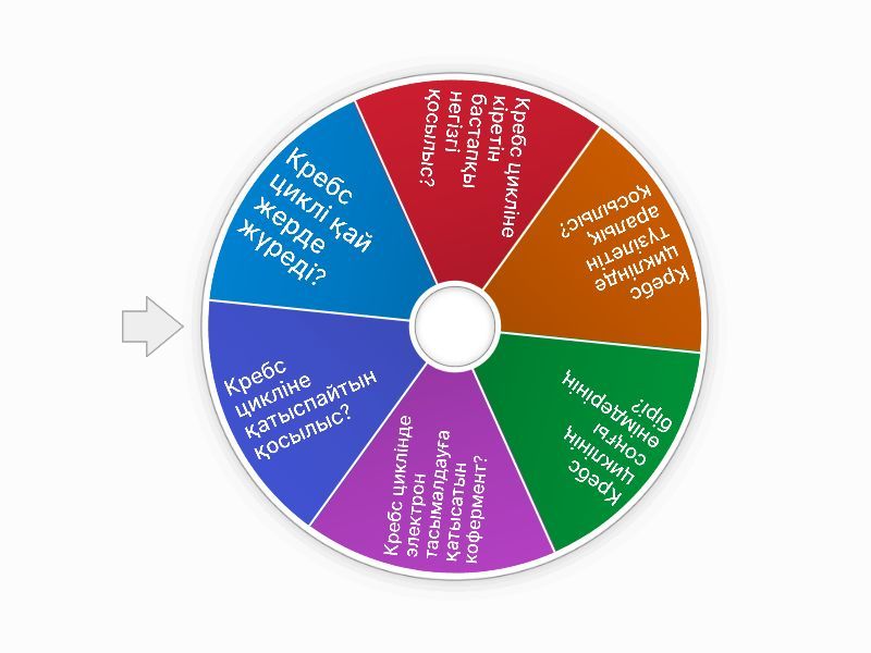 1) Кребс циклі қай жерде жүреді? a) Цитоплазма b) Рибосома c) Митохондрия матриксі d) Эндоплазмалық тор 2) Кребс цикліне кіретін бастапқы негізгі қосылыс? a) Пировиноград қышқылы b) Ацетил КоА c) Глюкоза d) ФАД 3) Кребс циклінде түзілетін аралық қосылыс? a) Фруктоза-1,6-дифосфат b) Оксалоацетат c) Глюкоза-6-фосфат d) Рибулоза-5-фосфат 4) Кребс циклінің соңғы өнімдерінің бірі? a) АТФ b) Н₂О c) СО₂ d) О₂ 5) Кребс циклінде электрон тасымалдауға қатысатын кофермент? a) НАД⁺ b) АТФ-синтаза c) tRNA d) Цитохром 6) Кребс цикліне қатыспайтын қосылыс? a) Сукцинат b) Цитрат c) ФАДН₂ d) Глюкоза