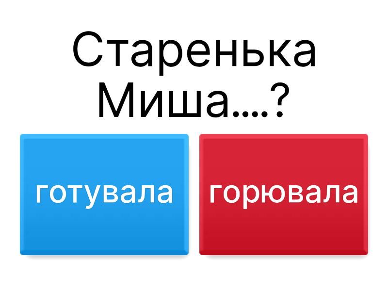 1) Старенька Миша....? a) готувала b) горювала 2) сама собі по світові .... a) блукала b) мандрувала 3) були колись — теперечки по світу a) розлетілись b) розбрелись 4) Пішла вона звичайненько ... a) прохати b) погуляти 5) хазяйство завести .... a) величезне b) маленьке