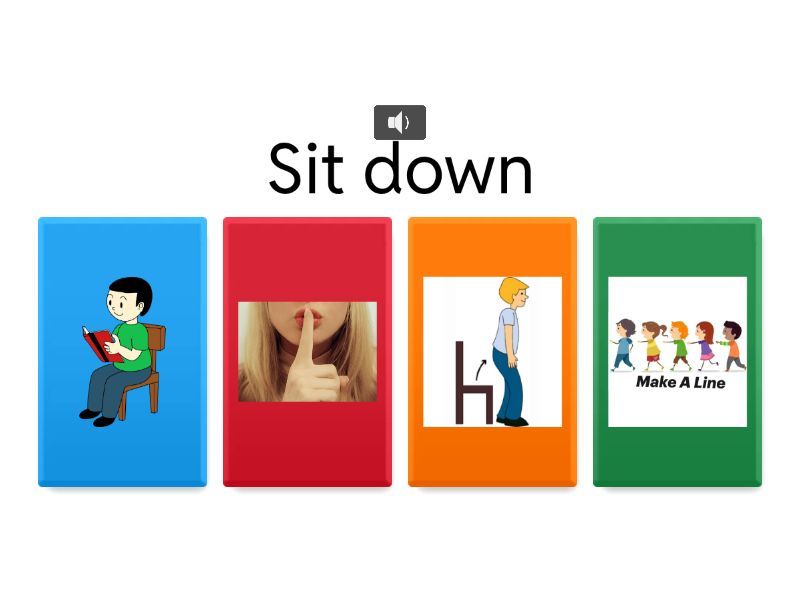 1) Sit down a) b) c) d) 2) Stand up a) b) c) d) 3) Make a line a) b) c) d) 4) Be quiet a) b) c) d) 5) Raise your hand! a) b) c) d) 6) Listen to the teacher! a) b) c) d) 7) Clean the blackboard a) b) c) d) 8) Come in! a) b) c) d) 9) Look at the blackboard! a) b) c) d) 10) Pack the school bags! a) b) c) d)