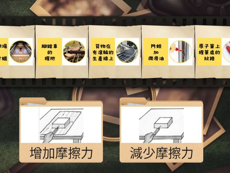 增加摩擦力: , , , , , , , 減少摩擦力: , , , , , , ,