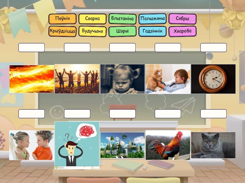 Пеўнік, Гадзіннік, Шэры, Сябры, Блытаніна, Крыўдзіцца, Сварка, Хвароба, Будучыня, Палымяны,