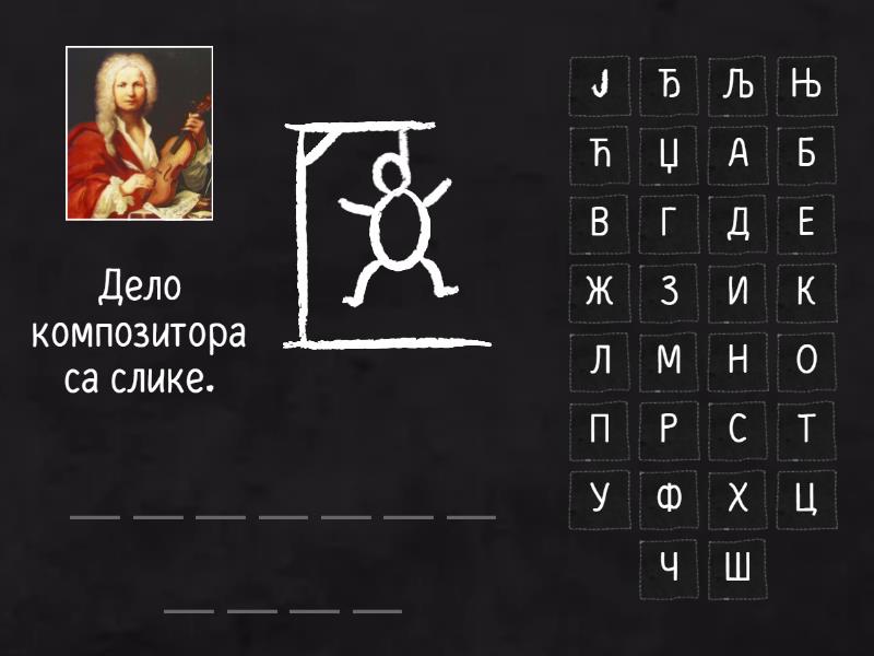 Годишња доба - Дело композитора са слике., Сењачка рапсодија - Дело композиторке са слике., Коњаник - Дело композитора са слике., Пасторална симфонија - Дело композитора са слике., Бранково коло - Дело композиторке са слике., Охридска легенда - Дело композитора са слике., Мала ноћна музика - Дело композитора са слике., Едвард Григ - Име композитора са слике., Гудачки квартет - Састав са фотографије., Серенада - Љубавне песме које су младићи певали девојкама испод прозора.,