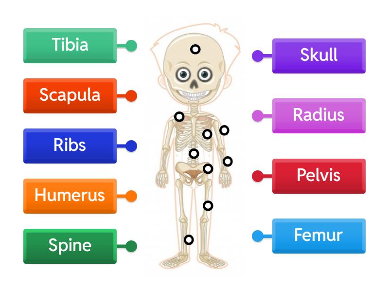 Femur, Pelvis, Humerus, Spine, Radius, Ribs, Tibia, Scapula, Skull.