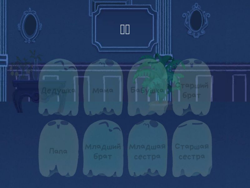 Папа - 爸爸, Мама - 妈妈, Старшая сестра - 姐姐, Младший брат - 弟弟, Старший брат - 哥哥, Младшая сестра - 妹妹, Бабушка - 奶奶, Дедушка - 爷爷,