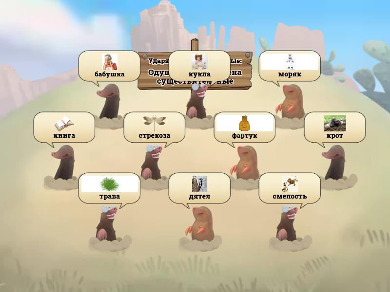 Одушевлённые имена существительные: бабушка, моряк, стрекоза, крот, дятел, червяк, пилот, Неодушевлённые имена существительные: кукла, книга, фартук, трава, смелость, ветер,