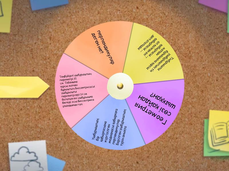 перпендикуляр деген не?, Тікбұрышты үшбұрыштың тік бұрышына қарсы жатқан қабырғасы ...., ал қалған екі қабырғасы ..... деп аталады , Геометрия сөзі қайдан шыққан?, Үшбұрыштың бір қабырғасына жүргізілген медианасы қабырғаға перпендикуляр. Берілген үшбұрыштың түрін анықта , Теңбүйірлі үшбұрыштың периметрі 32 см. Табанына қарсы жатқан бұрыштың биссектрисасы үшбұрышты периметрлері 24 см болатын екі үшбұрышқа бөледі. осы биссектриса ұзындығын тап .