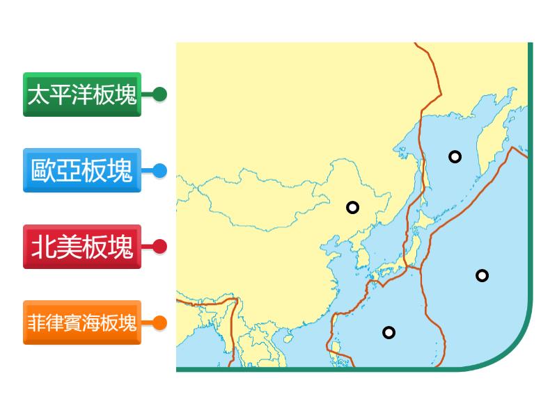 歐亞板塊, 北美板塊, 菲律賓海板塊, 太平洋板塊.