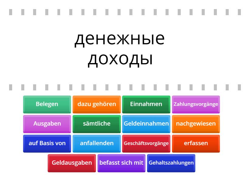 Geldeinnahmen - денежные доходы, Geldausgaben - денежные расходы , nachgewiesen - подтверждать, sämtliche - всё , Zahlungsvorgänge - платежные операции , auf Basis von - базируются на, Belegen - доказательство, erfassen - фиксировать, befasst sich mit - иметь дело с, anfallenden - текущих, Geschäftsvorgänge - бизнес - процессы, dazu gehören - к этому относится , Einnahmen - доход, Ausgaben - расход, Gehaltszahlungen - выплаты зарплаты,