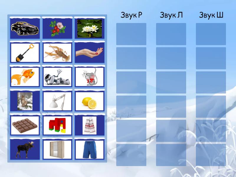 Звук Р: , , , , , , Звук Л: , , , , , , Звук Ш: , , , , , ,