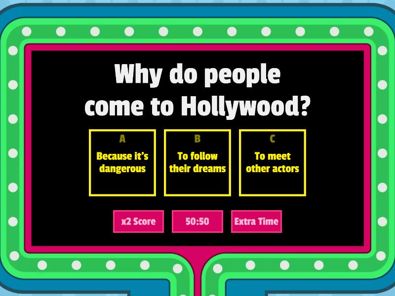1) Why do people come to Hollywood? a) Because it's dangerous b) To follow their dreams c) To meet other actors 2) Why was James Dean nicknamed 'America's Rebel'? a) He played a teenager in the film Rebel Without a Cause b) He was friends with another actor, Ronald Regan c) Teenagers respected his rebellious attitude 3) What did he do before he arrived in Hollywood? a) He performed dangerous stunts on television b) He raced motorbikes c) He worked in a restaurant 4) Why did Dean argue with his father? a) His father caught him drinking whisky b) He crashed his father's car c) His father didn't want want him to be an actor