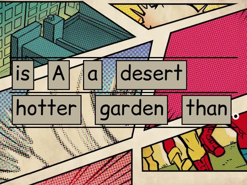 A desert is hotter than a garden., Lions are more dangerous than cats., A town is smaller than a city., A mountain is higher than the sea., A mouse is smaller than an elephant.,