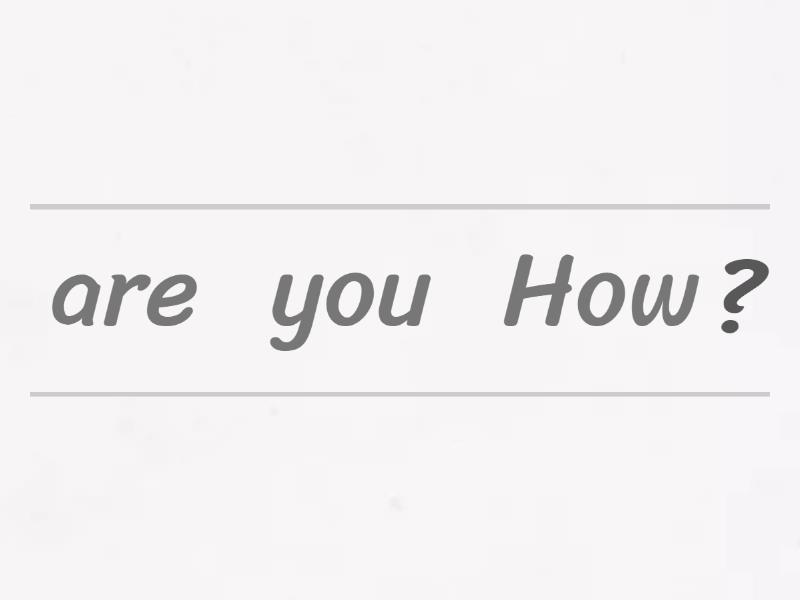 How are you?, I am happy., I am worried., How old are you?, I am 12 years old., I am 15 years old., I am 20 years old., Where are you from?, I am from China., I am from Mexico., What is it?, It's a backpack., It's a keyboard., What are they?, They are grapes., They are bananas. , They are avocados. , Who is this?, This is my family., This is my brother., These are my parents., What color is it?, It is orange., It is brown., What is your favoirte color?, My favorite color is purple., My favorite color is yellow., What is your favorite animal?, My favorite animal is a shark., My favorite animal is a rabbit., What is this?, This is my nose., This is my stomach., What are these?, These are my arms., These are eyes., Is it a triangle?, Yes it is a rectangle., No it isn't an oval., Is it a star?,