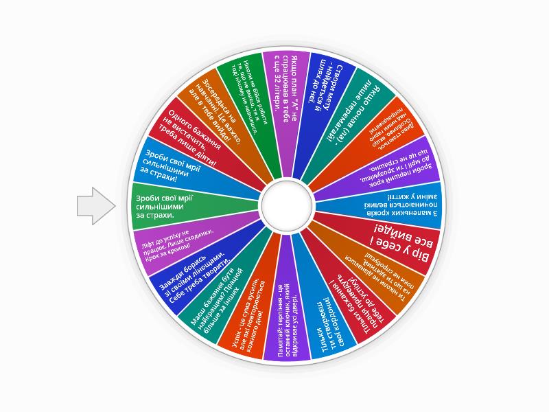 1) Зроби свої мрії сильнішими за страхи! 2) Одного бажання не вистачить, треба лише діяти! 3) Зосередься на навчанні. Це важко, але в тебе вийде! 4) Ніколи не бійся робити те, що не вмієш, ти ж тоді нічому не навчишся. 5) Якщо план "А" не спрацював в тебе є ще 32 літери. 6) Створи мету - найдеться й шлях до неї. 7) Якщо почав (ла) - лише перемагай! 8) Дива стаються. Особливо, якщо над ними гарно попрацювати! 9) Зроби перший крок до мрії і ти зрозумієш, що це не страшно. 10) З маленьких кроків починаються великі зміни у житті! 11) Вір у себе і все вийде! 12) Ти ніколи не дізнаєшся на що ти здатний, поки не спробуєш! 13) Тільки бажання і праця приведуть тебе до успіху! 14) Тільки ти створюєш свої кордони! 15) Памятай: терпіння - це останній ключик, який відкриває усі двері. 16) Успіх - це сума зусиль, але які повторюються кожного дня! 17) Маєш бажання бути найкращим? Працюй більше за інших 18) Завжди борись зі своїми лінощами. Себе треба творити. 19) Ліфт до успіху не працює. Лише сходинки. Крок за кроком! 20) Зроби свої мрії сильнішими за страхи.