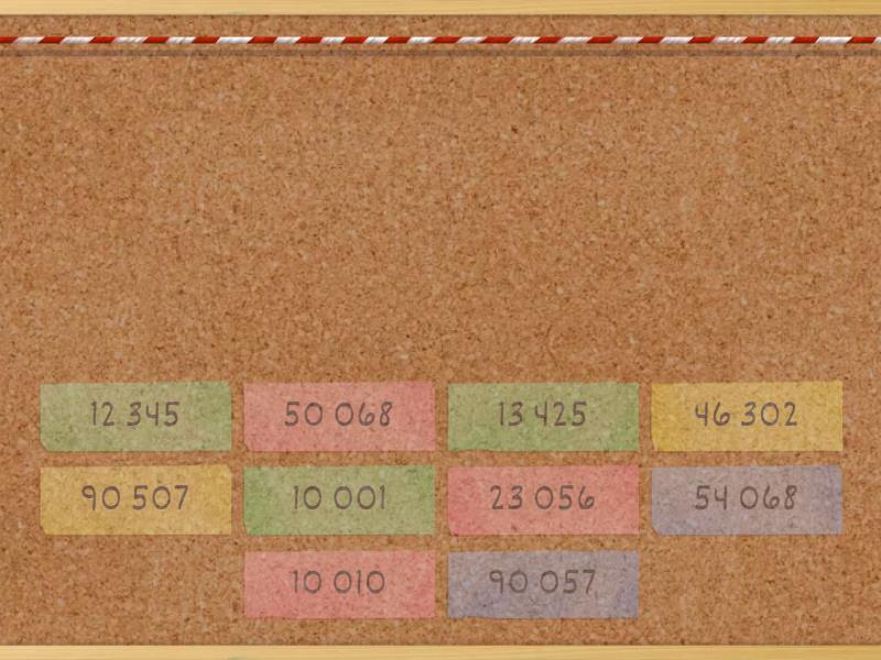 12 345 - 一萬二千三百四十五, 23 056 - 二萬三千零五十六, 90 057 - 九萬零五十七, 90 507 - 九萬零五百零七, 10 001 - 一萬零一, 10 010 - 一萬零一十, 54 068 - 五萬四千零六十八, 46 302 - 四萬六千三百零二, 13 425 - 一萬三千四百二十五, 50 068 - 五萬零六十八,