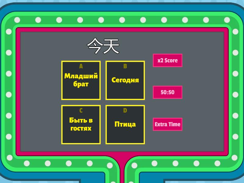 1) 今天 a) Младший брат b) Сегодня c) Быть в гостях d) Птица 2) 弟弟 a) Сегодня b) Птица c) Младший брат d) Пекин 3) 哈哈哈 a) Ха-ха-ха b) Сегодня c) Завтра d) Сч.сл. для плоских предметов 4) 两 a) Два, пара b) Москва c) Сч. сл. для членов семьи d) Пекин 5) 只 a) Москва b) Жить, проживать c) Сегодня d) Сч.сл. для животных 6) 鸟 a) Быть в гостях b) Птица c) Ха-ха-ха d) Жить, проживать 7) 明天 a) Завтра b) Москва c) Пекин d) Сч.сл. для животных 8) 做客 a) Сч. сл. для членов семьи b) Ха-ха-ха c) Жить, проживать d) Быть в гостях 9) 北京 a) Пекин b) Ха-ха-ха c) Младший брат d) Сч.сл. для плоских предметов 10) 莫斯科 a) Ха-ха-ха b) Москва c) Сч.сл. для животных d) Быть в гостях 11) 张 a) Сч.сл. для плоских предметов b) Завтра c) Пекин d) Птица 12) 口 a) Сч.сл. для животных b) Сч. сл. для членов семьи c) Завтра d) Птица 13) 住 a) Пекин b) Жить, проживать c) Сегодня d) Сч.сл. для животных