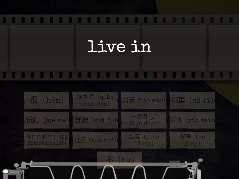 住在 (zhù zài) - live in, 哪里(nǎ lǐ) - where, 你住在哪里? (Nǐ zhù zài nǎlǐ?) - Where do you live?, 漂亮(piào liang) - beautiful, 舒服 (shū fu) - comfortable, 安静 (ān jìng) - quiet, peaceful, 好玩 (hǎo wán) - fun, 觉得 (jué de) - think, 因为(yīn wèi) - because, 不(bù) - not, 很(hěn) - very, 一点点 (yī diǎn diǎn) - a little bit, 浅水湾(qiǎn shuǐ wān) - repulse bay,