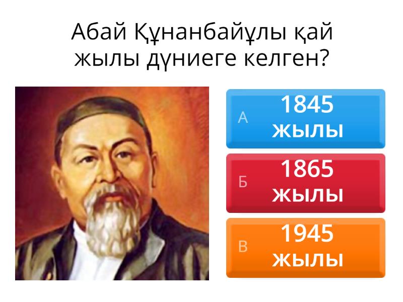 1) Абай Құнанбайұлы қай жылы дүниеге келген? a) 1845 жылы b) 1865 жылы c) 1945 жылы 2) Сөйлемнің бірыңғай мүшелері дегеніміз не? a) Екі немесе одан да көп жай сөйлемнен құралған b) Сөйлемде бір ғана сұраққа жауап беретін, бірдей сөз табынан тұратын сөйлем мүшелері c) Әр түрлі сұраққа жауап беретін сөйлем мүшелері 3) Абайдың қанша қара сөзі бар? a) 50 b) 35 c) 45 4) Сөйлемнен бірыңғай мүшелерді тап: Арман - білімді, тәртіпті, сабырлы бала. a) Арман, білімді b) білімді, тәртіпті, сабырлы c) сабырлы, бала 5) Сөйлемнің бірыңғай мүшелерінің арасына қандай тыныс белгі қойылады? a) үтір b) нүкте c) сызықша 6) "Ғылым таппай мақтанба" өлеңінің негізгі ойы қандай? a) достыққа адал болу туралы b) бес асыл қасиеттің маңызы, бес жаман істен аулақ болу c) ата-ананы құрметтеу , сыйлау туралы