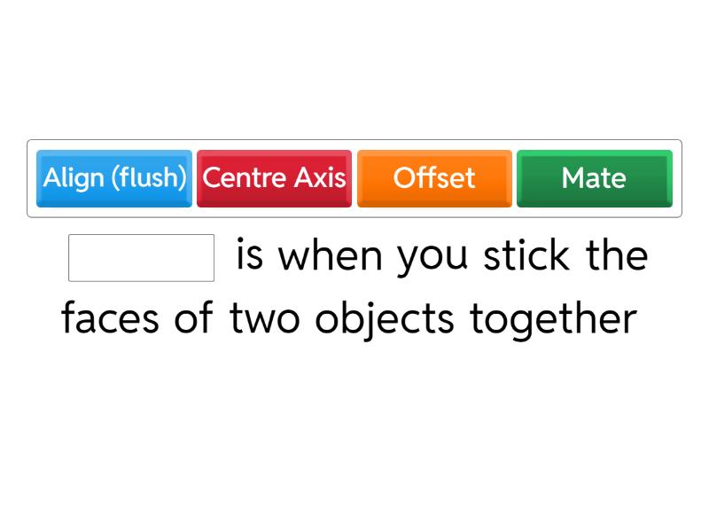 ____ is when you stick the faces of two objects together ____ when you put the faces of two objects in line with each other ____ when cylinders or curves are lined up from their centre points