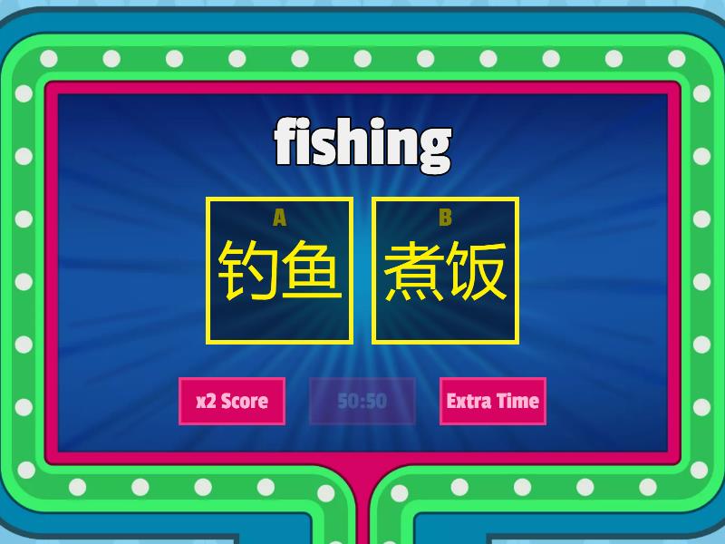 1) fishing a) 钓鱼 b) 煮饭 2) 在河边 a) by the riverside b) above the sky 3) 一会儿 a) a moment b) then 4) already a) 已经 b) 然后 5) 怎么 a) how/why b) where 6) 捉 a) catch/fetch b) run 7) 生气 a) angry/upset b) happy 8) 专心 a) focus b) easygoing