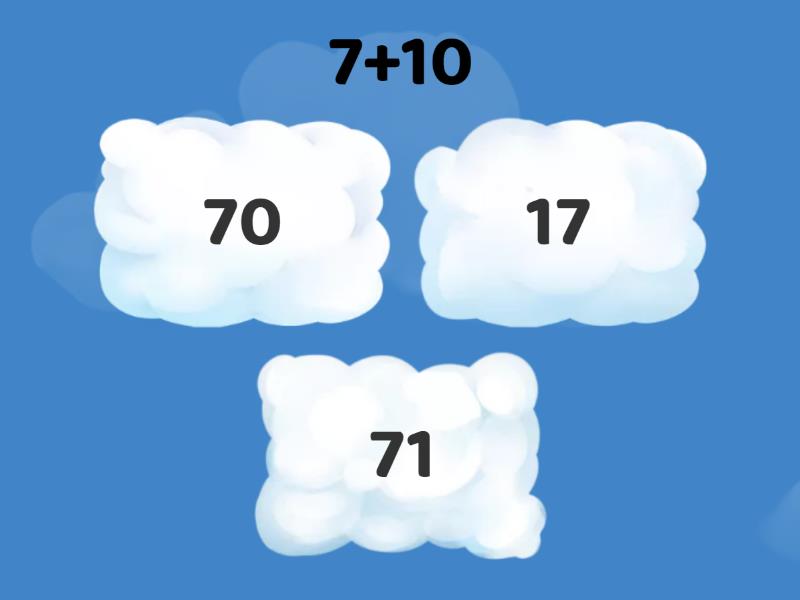 1) 7+10 a) 70 b) 17 c) 71 2) 25+10 a) 30 b) 250 c) 35 3) 20-10 a) 10 b) 11 c) 19 4) 42+10 a) 32 b) 420 c) 52 5) 45+10 a) 55 b) 46 c) 35 6) 16-10 a) 60 b) 6 c) 26 7) 100-10 a) 99 b) 90 c) 80 8) 34-10 a) 24 b) 33 c) 44 9) 77-10 a) 17 b) 67 c) 87 10) 80-10 a) 79 b) 70 c) 90