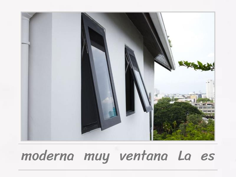 La ventana es muy moderna, La silla es blanca, El sofá es vieja, El ordenador es moderno, Nosotros vendemos el escritorio, Yo descanso en el despacho, Lucas tiene un reloj italiano, Las ventanas son muy cómodas, En la estantería hay muchos periódicos, En Francia no hay guerra, El abogado firma un contrato en el despacho, Una mujer canta en la cola, ¿Usted vende las lámparas?, ¿Dónde están las gafas?, El abogado está en el juzgado, El portátil no es nuevo, En la calle no hay gente, Las puertas no son amarillas, El jueves yo descanso en el pueblo., En el juzgado no hay ordenadores viejos,