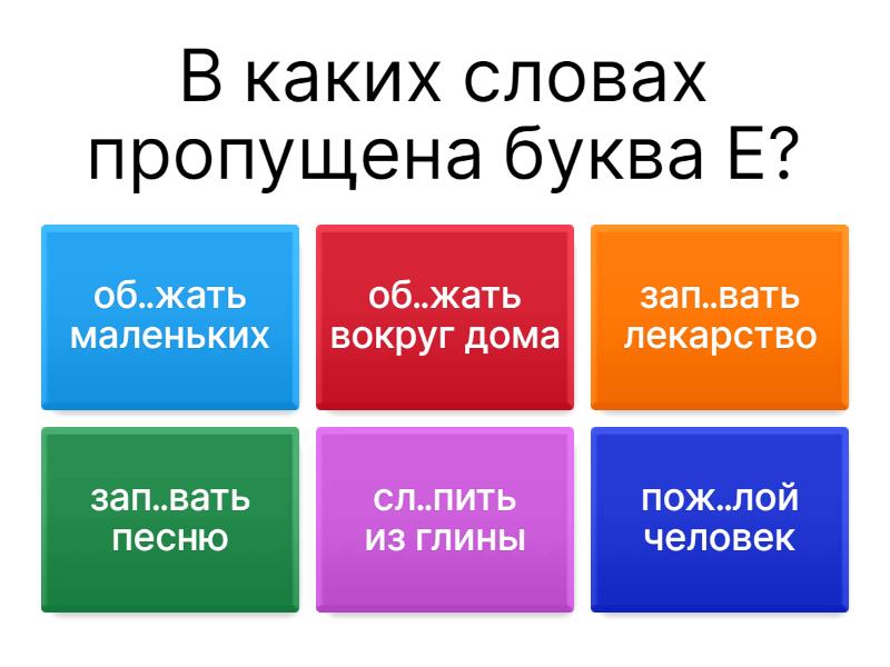 1) В каких словах пропущена буква Е? a) об..жать маленьких b) об..жать вокруг дома c) зап..вать лекарство d) зап..вать песню e) сл..пить из глины f) пож..лой человек 2) В каких словах пропущена буква А? a) ст..рожил деревни b) погл..щение влаги c) оч..ровательная девушка d) пок..яние e) раз..бщённость f) р..скошный 3) В каких словах пропущена буква О? a) пол..скать бельё b) раск..лить печь c) укр..титель тигров d) ёлочные укр..шения e) упр..щённый разбор f) насл..ждение морем 4) В каких словах пропущена буква А? a) высокое загр..ждение b) задр..жать от страха c) огл..вление книги d) угр..жать врагу e) прогл..тить пилюлю f) пол..скать котёнка 5) Укажи глаголы 1 спряжения. a) клеить b) стелить c) дышать d) плясать e) обидеть f) обижать 6) Укажи все слова, в которых нужно написать Ь. a) колышут..ся травы b) надо старат..ся c) виднет..ся вдали d) крики разносят..ся e) послышит..ся издалека f) может расклеит..ся 7) Укажи все слова, в которых нужно написать Ь. a) тиш.. b) борщ.. c) береч.. d) много туч.. e) луч.. f) брош.. 8) Укажи слова с непроизносимой согласной в корне. a) грус..ный b) умес..ный c) чудес..ный d) ужас..ный e) опас..ный f) ус..ный