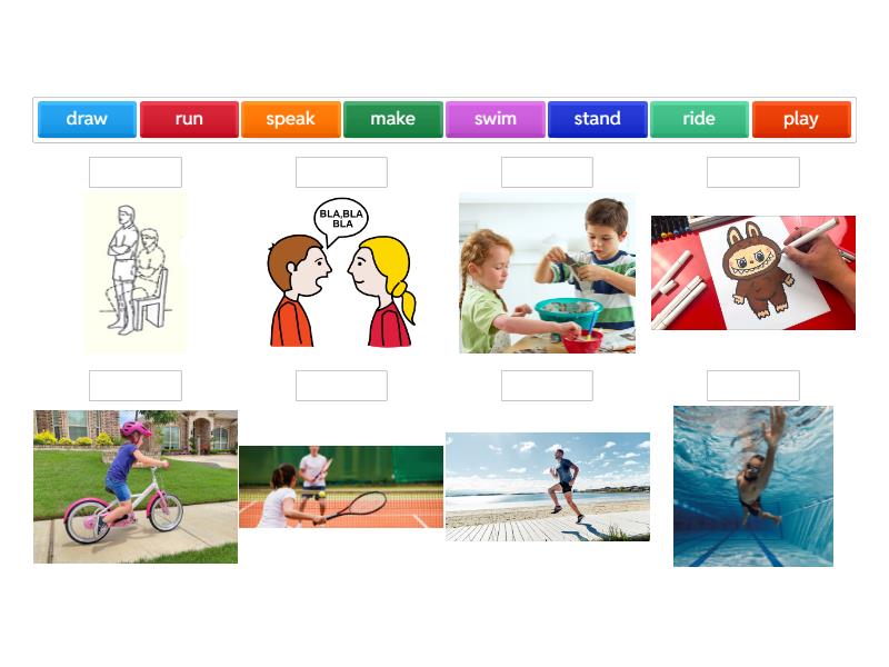 draw, make, ride, run, speak, stand, swim, play,