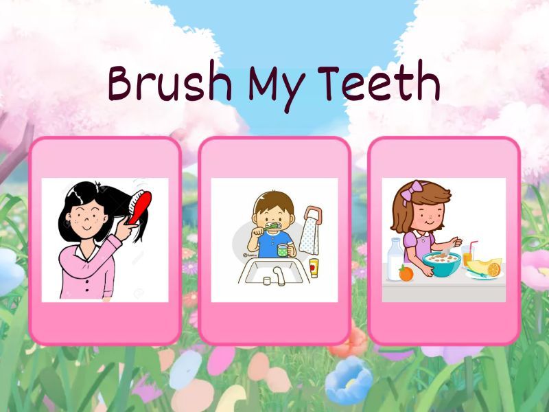 1) Brush My Teeth a) b) c) 2) Get Up a) b) c) 3) take a bath a) b) c) 4) Get dressed a) b) c) 5) Brush my hair a) b) c) 6) eat dinner a) b) c) 7) Wash my hands a) b) c) 8) eat Lunch a) b) c) 9) eat breakfast a) b) c) 10) do homework a) b) c)