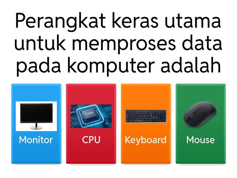1) Perangkat keras utama untuk memproses data pada komputer adalah a) Monitor b) CPU c) Keyboard d) Mouse 2) Kepanjangan dari IP Address adalah... a) Internet Point Address b) Inter Protocol Address c) Internet Protocol Address d) Internal Packet Address 3) Fungsi utama RAM adalah... a) Menyimpan data secara permanen b) Menyimpan data sementara saat komputer menyala c) Menjalankan sistem operasi d) Menampilkan gambar 4) Perintah untuk mencetak teks di Python adalah... a) A. input() b) B. print() c) C. echo() d) D. write() 5) Struktur logika percabangan di Python menggunakan kata kunci... a) A. for b) B. def c) C. if d) D. loop 6) Tipe data yang hanya memiliki dua nilai yaitu True dan False adalah... a) A. Integer b) B. Float c) C. String d) D. Boolean 7) Jaringan komputer yang mencakup area luas antar kota atau negara disebut... a) A. LAN b) B. WAN c) C. MAN d) D. PAN 8) Untuk menampung banyak data sejenis dalam satu variabel di Python digunakan... a) A. Boolean b) B. Float c) C. List d) D. Input 9) Proses mencari dan memperbaiki kesalahan dalam kode program disebut... a) A. Coding b) B. Executing c) C. Debugging d) D. Browsing 10) Dalam dunia digital, hoaks berarti... a) A. File rusak b) B. Informasi palsu c) C. Data hilang d) D. Program baru 11) File dengan ekstensi .py menunjukkan file... a) A. Microsoft Word b) B. Python c) C. Excel d) D. HTML 12) Perintah input() pada Python digunakan untuk... a) A. Menampilkan teks b) B. Menerima masukan dari pengguna c) C. Melakukan perhitungan d) D. Menyimpan file 13) Untuk menyimpan data permanen, komputer memerlukan... a) A. RAM b) B. ROM c) C. Harddisk d) D. Monitor 14) Dalam jaringan komputer, perangkat yang berfungsi untuk menghubungkan antar komputer adalah... a) A. Router b) B. Monitor c) C. CPU d) D. Speaker 15) Perulangan dalam bahasa Python dapat dibuat dengan perintah... a) A. if b) B. def c) C. loop d) D. for 16) Bahasa pemrograman yang sering digunakan untuk pemula karena sintaksnya sederhana adalah... a) A. C++ b) B. Java c) C. Python d) D. Ruby 17) Istilah untuk menyusun langkah-langkah logis dalam memecahkan masalah disebut... a) A. Kompilasi b) B. Debugging c) C. Algoritma d) D. Koding 18) Contoh dari tipe data String adalah. a) A. 123 b) B. True c) C. "Halo Dunia" d) D. 45.6 19) Berikut ini yang bukan termasuk perangkat input adalah... a) A. Mouse b) B. Keyboard c) C. Printer d) D. Scanner 20) Fungsi dari sistem operasi adalah... a) A. Menyimpan data pengguna b) B. Menghubungkan pengguna dengan perangkat keras c) C. Menampilkan gambar d) D. Mempercepat internet 21) Satuan terkecil dalam data digital disebut... a) A. Byte b) B. Bit c) C. Megabyte d) D. Kilobyte 22) Contoh perintah percabangan if-else dalam Python adalah... a) A. if x == 10: print("sepuluh") else: print("bukan") b) B. if x == 10 then print("sepuluh") c) C. if x == 10: print("sepuluh"); else: print("bukan") d) D. if x == 10 print("sepuluh") 23) Berikut ini yang merupakan perangkat lunak adalah... a) A. CPU b) B. RAM c) C. Google Chrome d) D. Flashdisk 24) Dalam jaringan komputer, fungsi modem adalah... a) A. Menyimpan data b) B. Menghubungkan komputer ke internet c) C. Menampilkan layar d) D. Menjalankan program 25) Yang termasuk etika digital adalah... a) A. Menyebarkan hoaks b) B. Menghargai hak cipta c) C. Menduplikasi karya orang tanpa izin d) D. Meretas akun 26) Tipe data untuk bilangan desimal dalam Python adalah.. a) A. Integer b) B. Float c) C. String d) D. Boolean 27) Salah satu kelebihan Python adalah... a) A. Sulit dibaca b) B. Banyak tanda kurung c) C. Sintaks sederhana dan mudah dipahami d) D. Tidak dapat digunakan untuk web 28) Tujuan dari membuat program komputer adalah... a) A. Membuat virus b) B. Menyulitkan pekerjaan c) C. Memecahkan masalah secara otomatis d) D. Menghapus file 29) Berikut adalah perintah komentar dalam Python... a) A. <!-- komentar --> b) B. // komentar c) C. # komentar d) D. /* komentar */ 30) Format file gambar digital antara lain adalah... a) Format file gambar digital antara lain adalah... b) A. .txt c) B. .docx d) C. .jpg