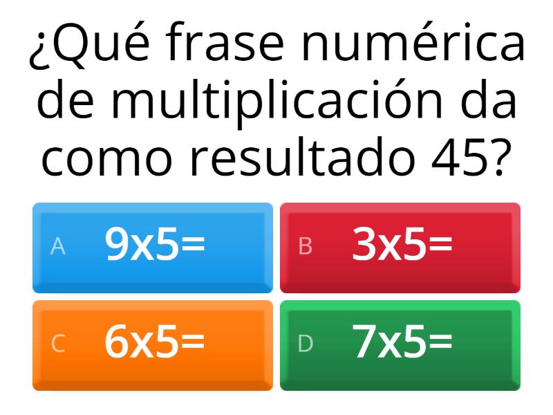 1) ¿Qué frase numérica de multiplicación da como resultado 45? a) 9x5= b) 3x5= c) 6x5= d) 7x5= 2) 9x2= a) 20 b) 18 c) 2 d) 16 3) 20-15= a) 3 b) 6 c) 15 d) 5 4) 123+295= a) 415 b) 418 c) 428 d) 518 5) 400-159= a) 241 b) 251 c) 151 d) 141 6) 726+255= a) 881 b) 981 c) 918 d) 888 7) A Pepe le gusta mucho leer. Tiene 368 libros en su habitación y su padre le regala 198 más. ¿Cuántos libros tiene ahora Pepe? a) 560 b) 466 c) 656 d) 566 8) María tiene 90 flores y las quiere repartir en grupos iguales a sus 10 amigas. ¿Cuántas flores le tiene que dar a cada amiga? a) Le tiene que dar a cada amiga 9 flores. b) Le tiene que dar a cada amiga 10 flores. c) 9 flores le tiene que dar a cada amiga. d) 9 flores. 9) 912-751= a) 261 b) 116 c) 161 d) 171 10) Elena ha comprado 918 caramelos para el cumpleaños de su sobrina. Los niños del cumple se han comido 799 caramelos. ¿Cuántos caramelos han sobrado? a) 118 b) 129 c) 219 d) 119