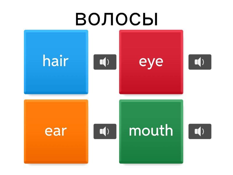 1) волосы a) hair b) eye c) ear d) mouth 2) глаз a) nose b) hair c) mouth d) eye 3) ухо a) mouth b) ear c) eye d) hair 4) нос a) hair b) ear c) eye d) nose 5) рот a) ear b) hair c) nose d) mouth