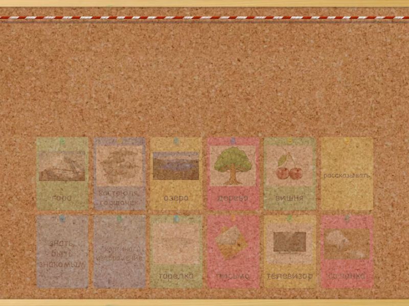 тарелка - der Teller, солонка - die Salzdose, кастрюля, горшочек - der Topf, озеро - der See, гора - der Berg, письмо - der Brief, знать, быть знакомым - kennen, телевизор - der Fernseher, вишня - die Kirsche, дерево - der Baum, картина, изображение - das Bild, рассказывать - erzählen,