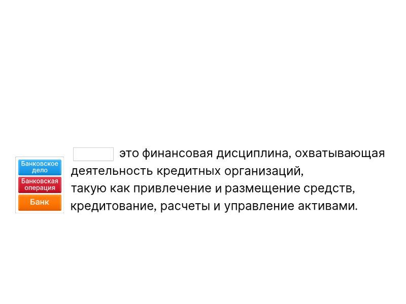 ____ это финансовая дисциплина, охватывающая деятельность кредитных организаций, такую как привлечение и размещение средств, кредитование, расчеты и управление активами.