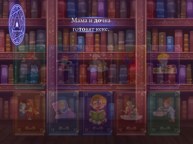 Мама и дочка готовят кекс. , Из крана течёт тёплая вода., Лев прыгал через кольцо., Денис прыгает по лужам., Рядом с Мишей спит его любимая игрушка., Лёша ест вкусную кашу. , Утка плавает в озере с утятами., Ёжик несёт грибы ежатам., У Лены живёт большой попугай. , Ваня читает смешные рассказы.,