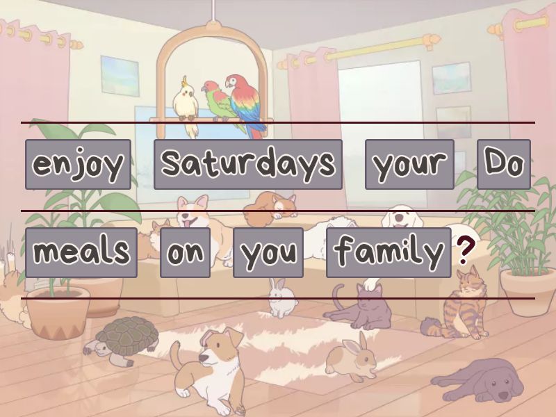 Do you enjoy your family meals on Saturdays?, How often can she chat with her friends online?, When do you go shopping at the weekend?, WHy does she try to visit her relatives once a month?, Do you stay in on the weekdays?, How many times a week do you go to the gym?, WHy do you hate doing housework? , When do your children do their homework?, Do you usually stay up late on Friday?, Is it possible to have a lie-in on Sundays? , Are you free after work in the evenings?,