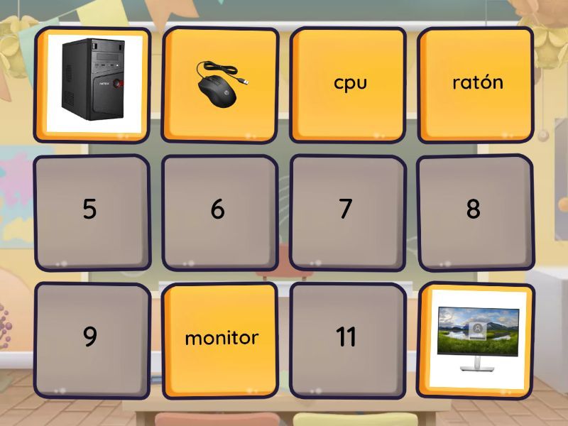 cpu, monitor, ratón, teclado, impresora, bocinas,